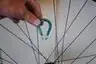 • Use the spoke wrench (red) to tighten the spokes (yellow). It is good practice to tighten the spoke before and after on the side that needs truing.