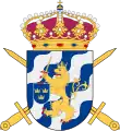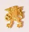 The coat of the arms of the Älvsborg Regiment (I 15/Fo 34) 1977–1994 and the Älvsborg Brigade (Älvsborgsbrigaden, IB 15) 1994–1997. Blazon: "The regimental badge, with waves six times divided bendy-sinister azure and argent, a double-tailed crowned lion rampant or, armed and langued gules, in dexter forepaw a sword or and in sinister a shield azure charged with three open crowns or placed two and one. The shield surmounted two muskets in saltire, or".[6] The coat of arms of the Älvsborg Regiment (I 15/Fo 34) 1994–1997 and the Älvsborg Group (Älvsborgsgruppen) 1997–2004. Blazon: "Azur, the regimental badge, three waves bendy-sinister argent, a double-tailed crowned lion rampant or, armed and langued gules, in dexter forepaw a sword or and in sinister a shield azure charged with three open crowns or, placed two and one. The shield sur-mounted two swords in saltire, or."[6]