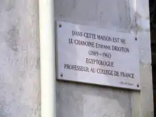 Etienne Drioton, his father, was originally from Burgundy where the family founded a business in Dijon in 1742 which developed along three axes: manufacture of church bronzes, manufacture of church ornaments and religious bookstore. Lawyer at the Court of Nancy, a profession he probably never exercised, he married on December 19, 1888, in Nancy with Félicie Moitrier, a native of Lorquin; both run a religious bookstore selling religious ornaments at n°4, quai Claude le Lorrain, while their new home and their clothing workshop are at n°6, rue Saint Antoine. Then, they will open a second store, Place Stanislas, at the corner of rue Héré, a store open from 1902 to 1971 (trade under the current name of Daum). Later, they will live in Villers les Nancy, 78.[1] Early in life he assisted as Conservative Deputy in the Department of Egyptian antiquities at the Louvre in Paris; in 1936 he became Director General of Antiquities of Egypt in the Egyptian Museum at Cairo; finally becoming Head Curator back at the Louvre in 1957. He deciphered hieroglyphic writings, and later laid the foundations of Coptic archaeology. Drioton authored numerous books, and has been considered the greatest Egyptologist of all time.[2]