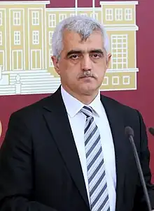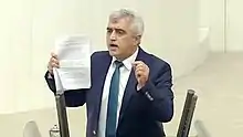 At the parliamentary elections of 24 June 2018, he was elected to the Turkish Grand National Assembly (TBMM) representing Kocaeli for the People's Democratic Party (HDP).[33] He is a member of the Parliamentary Commission of Human Rights Inquiry.[3] He draws attention to human rights violations and campaigns to improve the rights of Kurds, prisoners and people who have been purged after July 15, 2016 coup attempt. In January 2018, he signed a petition against Turkey's Operation Olive Branch against Afrin, Syria.
