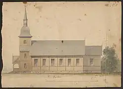 By the 1860s, the old church was in poor condition and it was decided to build a new church and tear down the old church. In 1862, the parish hired the architects Heinrich Ernst Schirmer and Wilhelm von Hanno to design the new church and Jacob Ørstenvig was hired as the lead builder. In 1864, the old church was torn down and work began on a new church about 50 metres (160 ft) to the east of the old church site. Some of the building materials as well as some of the interior furnishings of the old church were reused in the new church. Some of the interior design elements were inspired by the historic Urnes Stave Church. The new building was consecrated on 4 December 1864. In 1953, the church porch was torn down and rebuilt. The porch originally had a stave church-inspired design with a triangular gable in the middle, but when it was rebuilt it was given a wide gable shape, much like a temple front. In 1967–1970, the ground underneath the church was excavated to create a basement space where a new church hall and other utility rooms were constructed.[3][4][5]