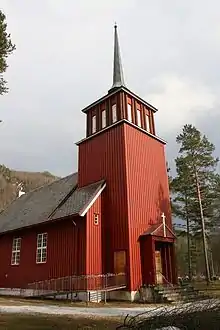 Øvre Saltdal Church (Norwegian: Øvre Saltdal kirke) is a parish church of the Church of Norway in Saltdal Municipality in Nordland county, Norway. It is located in the village of Røkland. It is one of two churches for the Saltdal parish which is part of the Salten prosti (deanery) in the Diocese of Sør-Hålogaland. The red, wooden church was built in a long church style in 1938 using plans drawn up by the architect Andreas W. Nygaard. The church seats about 200 people.[1][2]