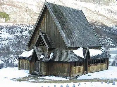 Øye Stave Church (Norwegian: Øye stavkyrkje) is a parish church of the Church of Norway in Vang Municipality in Innlandet county, Norway. It is located in the village of Øye. It is one of the churches for the Øye parish which is part of the Valdres prosti (deanery) in the Diocese of Hamar. The brown, wooden stave church was built in a long church design in 1965 using plans drawn up by the architect Ole Øvergaard using pieces salvaged from the old 12th century church that had originally been torn down in 1747. The church seats about 30 people.[1][2]