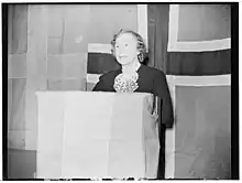 She co-founded the Nasjonal Samling's Women's Organisation. She started out as secretary under Marie Irgens before serving as leader from 1935 to 1941, when succeeded by Olga Bjoner. She was highly supportive of Vidkun Quisling during the party's in-fighting in the 1930s,[1] and for the 1936 Norwegian parliamentary election she was placed third on the party ballot in Oslo headed by Quisling.[2]