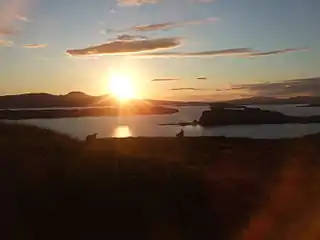 There have been several proposed locations for Vestrajǫrðr, which translates from Old Norse as: "the western firth". Writing in 1871 of the history and traditions of Skye, Alexander Cameron noted the events surrounding Þórkell at Vestrajǫrðr, and stated that the location refers to Loch Bracadale.[15] Some years later in 1886, historian Alexander MacKenzie also noted the battle, and stated that the location "was said to be" Loch Bracadale.[16] In 1922, Anderson suggested that Vestrajǫrðr may equate to Loch Dunvegan.[11] Recently Peder Gammeltoft has equated Vestrajǫrðr to either Loch Dunvegan or Loch Snizort.[17] In the late 18th century, James Johnstone considered that Hattarskot refers to a promontory in Argyllshire or Ross.[18] Later in the 19th century, antiquarian F.W.L Thomas stated that Hattarskot specifically refers to Applecross, and theorised that Hattarskot was a Norse attempt to render Aporcrosan—an early form of the placename.[19][20][note 5] Gammeltoft suggested that Hattarskot referred to Gairloch.[22]