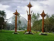 Česukai is famous by its bioenergetic pyramid build by a local resident Povilas Žėkas. It is on the site of where he had a mystical experience as a child of seven on 20 August 1990.[2] It attracts a broad range of people such as Laima Paksienė, wife of Rolandas Paksas, who goes there every two weeks sometimes with her whole family.[3] She participated in a campaign to save the pyramid from demolition when this was proposed by Lithuanian officials.[4] Many people visit this place believing that this pyramid has healing powers.