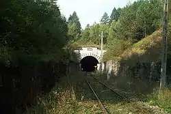 Łupków Pass was one of the strategically important Carpathian passes bitterly contested in battles on the Eastern Front of World War I during the winter of 1914/1915. An attempt to stand on the line of the Wisłok river and the Łupków Pass failed before renewed Austro-German attacks on 8 May 1915.[1] The railway tunnel was demolished and rebuilt multiple times during both World Wars. It was rebuilt again in 1946 but saw little use afterwards. Only in 1999 was regular passenger rail service reestablished through the pass.