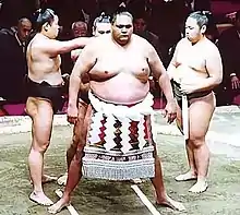 The 2013 Ōdō Tournament took place between September 11 and 23 and featured sixteen wrestlers. The participants and brackets were revealed on August 11. Included were the reigning Triple Crown Heavyweight Champion Suwama and four outside wrestlers; Mexican AAA representative Dark Cuervo, American freelancers D'Lo Brown and Low Ki and Austrian freelancer Bambi Killer.[11] As part of the openweight nature of the tournament, Atsushi Aoki, Kotaro Suzuki and World Junior Heavyweight Champion Yoshinobu Kanemaru from AJPW's junior heavyweight division also entered the tournament.[11][12] The tournament marked the first tour under an AJPW contract for longtime freelancer Akebono, who signed his contract on September 1.[13] On September 15, Suwama, the reigning Triple Crown Heavyweight Champion, was eliminated from the tournament in the second round by his former Last Revolution tag team partner Joe Doering.[14] After being eliminated from the tournament on September 16 by Akebono, Low Ki was sidelined for the rest of his AJPW tour with an abdominal injury.[15][16] The injury eventually led to Low Ki announcing his retirement from professional wrestling on October 14 due to AJPW supposedly not honoring their contractual obligation of medical care.[17] He, however, returned to the ring the following summer.[18] On September 23, Akebono defeated Go Shiozaki in the finals of the tournament to become the first Ōdō Tournament winner.[4][19] Following the win, Akebono went on to defeat Suwama on October 27 to win the Triple Crown Heavyweight Championship for the first time.[20][21]