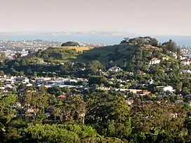 Located in the Remuera suburb, to the east of the Newmarket commercial suburb, it has been extensively modified by human use, first by Māori for use as a and later by use as quarry and pasture land before finally having a water reservoir installed in its cone to supply the surrounding area. An additional, partially buried, water reservoir was built on the low southern side of the mountain in 1955. English oaks and pohutukawa are the most common trees on the hill.[2]