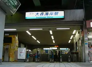 Ōmorikaigan Station (大森海岸駅, Ōmori-Kaigan-eki) is a Keikyu station on the Keikyū Main Line between Tachiaigawa and Heiwajima. The station is on the borders of Shinagawa and Ōta wards. Its station number is KK07.