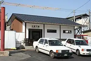 - ↑ "大野下" [Ōnoshimo]. Retrieved 2 April 2018. Blog entry with good photographic coverage of station facilities.
