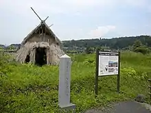 The site was found to contain the remnants of 14 pit dwellings, arranged around a horseshoe-shaped plaza. Each dwelling has a hearth pit at the center, some of which were found to contain carbonized grains. The excavated remains included some 26,000 artifacts, centering on shards of Jōmon pottery shards, stone tools for hunting and other and stone implements, such as millstones for grinding grain and nuts. [2]