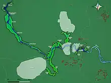 At the Big Collapse Doline (Slovene: Velika Dolina), the Reka River disappears underground into Škocjan Caves and then flows underground for 34 kilometers (21 miles), resurfacing near Monfalcone. There, it contributes approximately one-third of the flow of the Timavo River, which travels 2 kilometers (1.2 miles) from the Timavo Springs to the Adriatic Sea.[5]