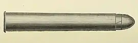 In 19th century Britain there were a large number of straight .450 cartridges developed of varying case lengths up to the 314-inch version. The .450 314-inch Black Powder Express was originally developed by Alexander Henry[4] as an experimental military cartridge for the 1869 British Army rifle trials that led to adoption of the Martini–Henry rifle. The original military trial "long chamber" cartridge was loaded with a bullet weighing 480 grains (31 g), although for military use it was found to be awkwardly long and difficult to handle and to load, in response Eley Brothers developed the much shorter, bottlenecked .577/450 Martini–Henry cartridge.[5][6]