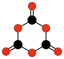 The chemical compound 1,3,5-trioxanetrione, or 1,3,5-trioxacyclohexane-2,4,6-trione is an unstable oxide of carbon with formula C3O6. It can be considered a cyclic trimer of carbon dioxide (CO2) or as a triple ketone of 1,3,5-trioxane (1,3,5-trioxacyclohexane). Trioxanetrione has been synthesized but is exceedingly unstable, with a half-life of approximately 40 min at −40 °C.[1] It decomposes to give carbon dioxide.