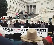 Opponents of Clinton's impeachment demonstrating outside the Capitol in December 1998