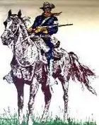 The motto of the 117th MP BN is "Our History, Our Strength". The painting of "Old Bill"[1] (pictured above), wearing an MP brassard, symbolizes the history of the unit and resides on the drill hall wall of the Tennessee Army National Guard armory in Athens, TN. The painting is derived from the original drawing by noted artist Frederic Remington portraying a cavalryman mounted on his horse in the Great American West during the late 1800s. Old Bill is the adopted mascot of the United States Cavalry and is known throughout the U.S. Army's Armor and Cavalry communities as the symbol of mobile warfare.[2] This depiction of Old Bill wearing an MP brassard represents the long shared history and lineage between the 117th MP BN (and its subordinate units in East Tennessee) with the 278th Armored Cavalry Regiment. The MP brassard was added to the painting (on Old Bill's left shoulder) during a ceremony in September 2006 when the unit in Athens (formerly Headquarters and Headquarters Troop, 1st Squadron, 278th Armored Cavalry Regiment) was reorganized and redesignated to its current designation as Headquarters and Headquarters Detachment, 117th Military Police Battalion.