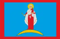 Emblem shows a silver Theotokos on a golden crescent, which was a part of Sumy Regiment flag during the Sloboda Ukraine.[9]