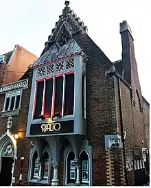 The school catered for working-class girls for more than 70 years, until about 1939. They were provided with a uniform of blue frocks with white cuffs and collars.[9] Changes to the provision of elementary education, brought about by the Education Act 1902 and the local education authority's opening of many new schools in the first decades of the 20th century,[15] reduced the school's importance, and by 1939 it had become a chapel under the name Refuge Church.[9] This use was brief; soon after World War II, the building was converted for commercial use, and several companies used it as offices.[9] Since 1969, when it became "Sloopy's Nitespot and Discotheque", the building has been used as a nightclub.[9] By 1990 it was operating as "Fozzie's Club";[16] it later became "The Sanctuary", "The Shrine", "Club New York" and "The Church"[17][18] before being renamed "New Hero"—the name it bore until its closure in 2011.[19] In January 2012, the owners of a nightclub in Worthing announced that they wanted to convert the building into the "House of the Lost"—a two-storey maze with a horror theme;[19] planning permission for this was granted in April 2012.[20] By 2014 the building was vacant again, and in October 2014 it was acquired by local lettings agent Roger Kay. He announced plans to turn the building into a theatre.[21] A planning application for internal alterations appropriate to its new use, such as the formation of a mezzanine floor and the installation of a stage and box office, was submitted and rejected in November 2014.[22] It opened as the Rialto Theatre on 4 December 2014, closed 2023. Its latest incarnation is an audiophile music venue, A L P H A B E T.