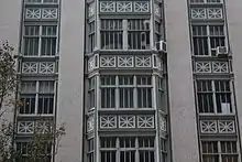 Although marketed as artists' studios, 130 West 57th Street was also home to lawyers, stock brokers, teachers, and other professionals.[13] The novelist William Dean Howells lived in the building; his son, architect John Mead Howells, also resided there until 1927.[30] William Dean Howells's firm Howells & Stokes designed a basement store one year after the building's completion.[13][31] Another resident, painter Childe Hassam, sometimes depicted the building's trapezoidal windows in his Impressionist paintings.[4] Marion Wilson, the spouse of Richard Thornton Wilson Jr., also lived at 130 West 57th Street; her late-night parties prompted Hassam and other residents to unsuccessfully file nuisance complaints against her.[32] The building's basement store was removed in 1922 and the entrance staircases were recessed as part of a project to widen West 57th Street. The facade otherwise saw few modifications during the 20th century, except for the installation of ground story storefronts.[13]