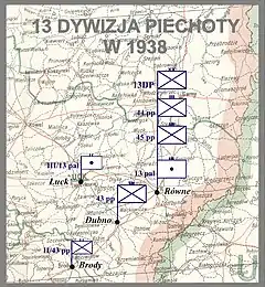 On September 9, 1919, the unit, after having been transformed to Poland, was renamed by Józef Piłsudski into 13th Infantry Division. Soon afterwards, it took part in the Polish-Soviet War, after which it was garrisoned in Rowne and other Volhynian towns, such as Dubno, Brody, Lutsk and Wlodzimierz Wolynski.