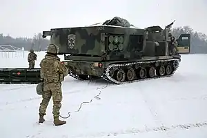 U.S. Soldiers assigned to Alpha Battery 1-142nd Field Artillery Brigade conduct artillery strike missions during Combined Resolve XV at the Grafenwoehr Training Area, Germany, Feb. 9, 2021.
