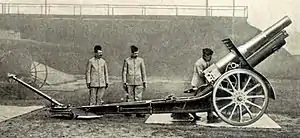 The 152 mm howitzer M1909 (Russian: 152-мм гаубица обр. 1909 г.) was a Russian Empire 152.4 mm (6 inch) howitzer. Developed by the French arms manufacturer Schneider et Cie it saw service throughout World War I.