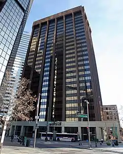 1600 Broadway (also known as the Colorado State Bank Building)[1] is a high-rise office building in the city of Denver, Colorado. The tower stands at a height of 352 feet (107 m), and comprises 26 floors.[2] The building was designed by architecture firm RNL Design, and its construction was completed in 1972.[1] Upon its completion, 1600 Broadway stood as the seventh-tallest building in Denver.[3] It is currently ranked as the 30th-tallest building in Denver. BOK Financial Corporation, formerly the Colorado State Bank, is located at the building.[4] In January 2019, Nuveen Real Estate purchased the building for $111 million.[5]
