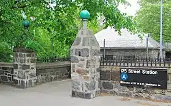 The ADA-accessible exits at the northwest, northeast, and southwest corners of Fort Washington Avenue and 177th Street. The northwest corner has two stairs, the southwest corner has one stair, and the northeast corner has one stair and one elevator.[21] There are also exits at the southwest and southeast corners of Fort Washington Avenue and 175th Street.[21]