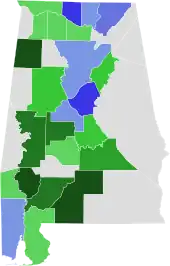1. Dubin notes that three newly created counties (Henry, Pickens, and Wilcox) do not have any returned ballots. It is possible that those returns were included in the returns of their neighboring counties.[1]