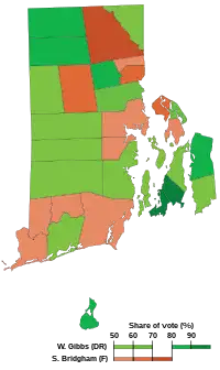 The 1821 Rhode Island gubernatorial election was an election held on April 18, 1821 to elect the Governor of Rhode Island. William C. Gibbs, the Democratic-Republican nominee, beat Samuel W. Bridgham, the Federalist candidate, with 56.97% of the vote.