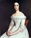 - Fanny Mendelssohn wears the V-neckline, sloped shoulder, and cascades of side curls fashionable in 1842.