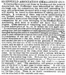 The Sheffield Football Association was founded in 1867 and took a subscription of 5 shillings from its member clubs in order to entitle them to entry.[1] Sheffield F.C. did not enter, as the club was concentrating on national matches.