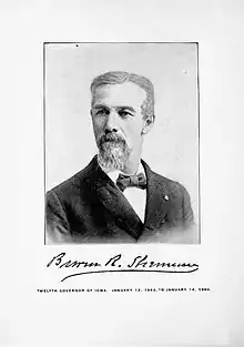The 1883 Iowa gubernatorial election was held on October 9, 1883. Incumbent Republican Buren R. Sherman defeated Democratic nominee L. G. Kinne with 50.15% of the vote.
