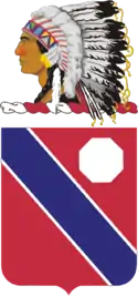 The 189th Field Artillery Regiment was constituted in the National Guard in 1921, assigned to the 85th Field Artillery Brigade (VIII Corps), and allotted to the state of Oklahoma. It was organized and federally recognized on 14 October 1921 by the redesignation of the 2nd Field Artillery Regiment of the Oklahoma National Guard. It was reassigned to the 187th Field Artillery Brigade (VIII Corps) on 2 July 1923. In March 1930, the regiment was relieved from the 187th Field Artillery Brigade and assigned to the 45th Division. The 189th Field Artillery Regiment, consisting of two battalions of 155mm howitzers, truck drawn, was inducted into Federal service on 16 September 1940 and stationed at Fort Sill, Oklahoma. The 189th Field Artillery Regiment moved to Camp Barkeley, Texas on 6 March 1941. On 11 February 1942, the regiment split into two separate battalions, the 1st Battalion, 189th FA Regiment retained the number and remained with the 45th Division. The 2nd Battalion, 189th FA Regiment was redesignated as 202nd Field Artillery Regiment and was assigned to General Headquarters Reserve. The 202nd Field Artillery Regiment was further reorganized on 1 March 1943 when the 1st Battalion was redesignated as the independent 202nd Field Artillery Battalion and the 2nd Battalion became the 961st Field Artillery Battalion. The 189th fought in Sicily, Italy, France, and Germany during World War II, receiving the Presidential Unit Citation for action on the Salerno Beachhead. The battalion was recalled to active duty in 1950 with the 45th Infantry Division and fought in Korea.[1]