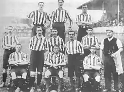 In the summer of 1901, the Football Association introduced a "maximum wage" for footballers of £4 per week; as a result, players such as Jack Robinson and Harry Wood were forced to take a pay cut.[2] Whilst this measure was of little immediate effect on the club, it would make it harder to entice players away from the Football League.[2] With debts of £1,500, Southampton needed to trim their payroll,[2] with Arthur Chadwick joining neighbours Portsmouth,[3] Alf Milward joining New Brompton[4] and Wilf Toman returning to Everton,[5] while Jimmy Yates dropped down into non-league football.[6]