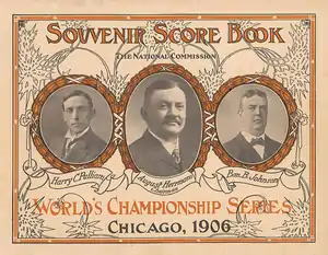 A program featuring league presidents Ban Johnson and Harry Pulliam, and National Baseball Commission President August Herrmann