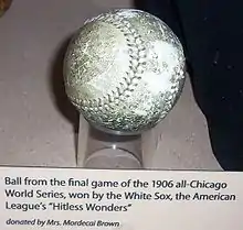 The 1906 World Series was the championship series in Major League Baseball for the 1906 season. The third edition of the World Series, it featured a crosstown matchup between the American League champion Chicago White Sox and the National League champion Chicago Cubs. The Cubs had posted the highest regular-season win total (116) and winning percentage (.763) in the major leagues since the advent of the 154-game season. The White Sox, known as the "Hitless Wonders" after finishing with the worst team batting average (.230) in the American League, beat the Cubs in six games for one of the greatest upsets in Series history as the Sox out-pitched the Cubs in their first two wins and out-hit them in their last two. The home teams alternated, starting with the National League Cubs being home in Game 1.
