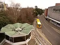 On the west side of The Square, the double track tram lines split at the east end of Poole Hill: the westbound line took the more direct route up the steep Commercial Road; while the eastbound line turned left at the Triangle, and then right into Avenue Road in order to reduce the downhill gradient.[3] At this point in time, the tram lines in and approaching the square were equipped for conduit current collection, not overhead wires.[4][5]