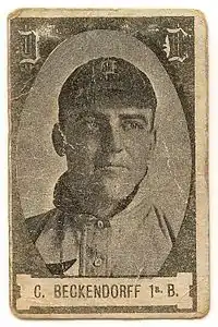 First baseman Claude Rossman played for the Tigers from 1907 to 1909. In 1908, Rossman had the best year of his career with 33 doubles (2nd in the AL), 219 total bases (3rd in the AL), and 48 extra base hits (3rd in the AL). On August 20, 1909, the Tigers traded him to the St. Louis Browns for Tom Jones. Rossman had a peculiar emotional quirk where he sometimes froze and could not throw the ball when he became excited. Runners would lead off first to draw a throw from the pitcher, then run to second when Rossman froze.[3] He was 28 when he played his last major league game and died at age 46 in a New York hospital for the insane where he had been a patient for several years.