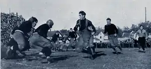 As the work at Whitmore Lake concluded, the Detroit Free Press wrote that the team was "rounding into form rapidly" and looked "like a machine."[15] The Free Press opined that the backfield showed plenty of speed, and the line appeared to be Michigan's strongest in years.[16] Pre-season practice continued at Ferry Field during the first week of October.[17][18][19][20]