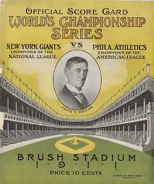 - ↑ "1911 World Series Game 5 – Philadelphia Athletics vs. New York Giants". Retrosheet. Retrieved September 13, 2009.