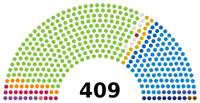 For the Congress of Deputies, 98 seats were elected using a partial block voting system in 28 multi-member constituencies, with the remaining 311 being elected under a one-round first-past-the-post system in single-member districts. Candidates winning a plurality in each constituency were elected. In constituencies electing ten seats or more, electors could vote for no more than four candidates less than the number of seats to be allocated; in those with more than eight seats and up to ten, for no more than three less; in those with more than four seats and up to eight, for no more than two less; in those with more than one seat and up to four, for no more than one less; and for one candidate in single-member districts. Additionally, in those districts where the number of candidates was equal or less than the number of seats up for election, candidates were to be automatically elected. The Congress was entitled to one member per each 50,000 inhabitants, with each multi-member constituency being allocated a fixed number of seats. The law also provided for by-elections to fill seats vacated throughout the legislature.[2][6][7][8]