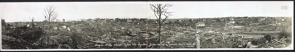 The 1919 Fergus Falls tornado was a large and destructive tornado that struck Fergus Falls, Minnesota on Sunday, June 22, 1919. It killed 57 people and is the second deadliest tornado in Minnesota's history (1st was the 1886 Sauk Rapids tornado). This tornado occurred just 10 months after a tornado in Tyler, Minnesota killed 36 people. That twister was Minnesota's fourth deadliest on record.[1]