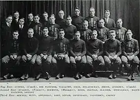 Fullback William Kopp was the team captain.[4] Three Illinois players received mention on the 1919 All-America college football team: end Dick Reichle (first-team choice by the Reno Evening Gazette);[5] tackle Burt Ingwersen (second-team choice by Walter Camp); and guard Jack Depler (second-team choice by Camp).[6]