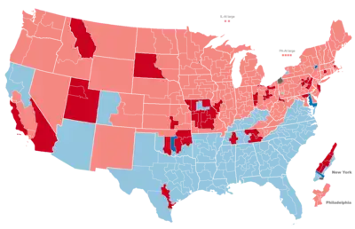 | 1920 presidential election results. Red denotes states won by Harding, blue denotes states won by Cox. Numbers indicate the electoral votes won by each candidate. | |