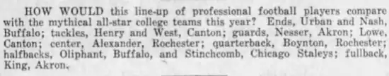 - ↑ "1921 APFA All-Pros". pro-football-reference.com. Sports Reference LLC. Retrieved July 24, 2014.