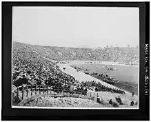 The 1923 Rose Bowl, played on January 1, 1923, was an American Football bowl game. It was the 9th Rose Bowl Game. The USC Trojans defeated the Penn State Nittany Lions 14-3.[1] Leo Calland, a USC guard, was named the Rose Bowl Player of the Game when the award was created in 1953 and selections were made retroactively.[2] It was the first bowl game appearance for both the University of Southern California and Pennsylvania State University football teams. It was also the first Tournament of Roses football game held in the newly constructed Rose Bowl Stadium, although other games had been played in it prior to this one.