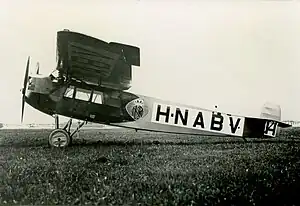 On 29 October 1921 pilot R. Hofstra of the H-NABL was lost and had to make a landing during the night in the darkness at Waalhaven Airport. The plane flipped over due to poor lighting. The hull was damaged; the engine was not damaged and of the wings only a few plates had minor damage in the middle.[2] The H-NABR was built From the H-NABL hull.[1]