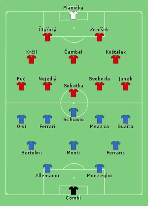 - ↑ "Italy-Czech Republic/Czechoslovakia matches 1922-2013". 21 December 2017. Retrieved 20 April 2019.